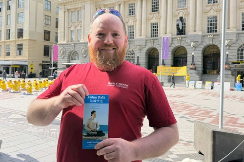 Zur friedlichen Aufklärungsarbeit der Praktizierenden sagte er: „Das erfüllt mich mit Stolz, Mensch zu sein. Ihr steht trotz enormen Drucks auf – das ist eine große Kraft.“