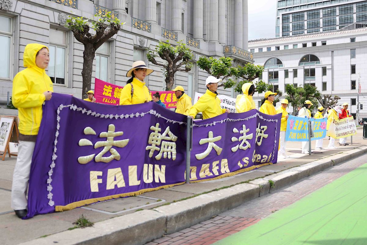 Fotoausstellung von Falun-Gong-Praktizierenden vor dem Rathaus von San Francisco am 21. April