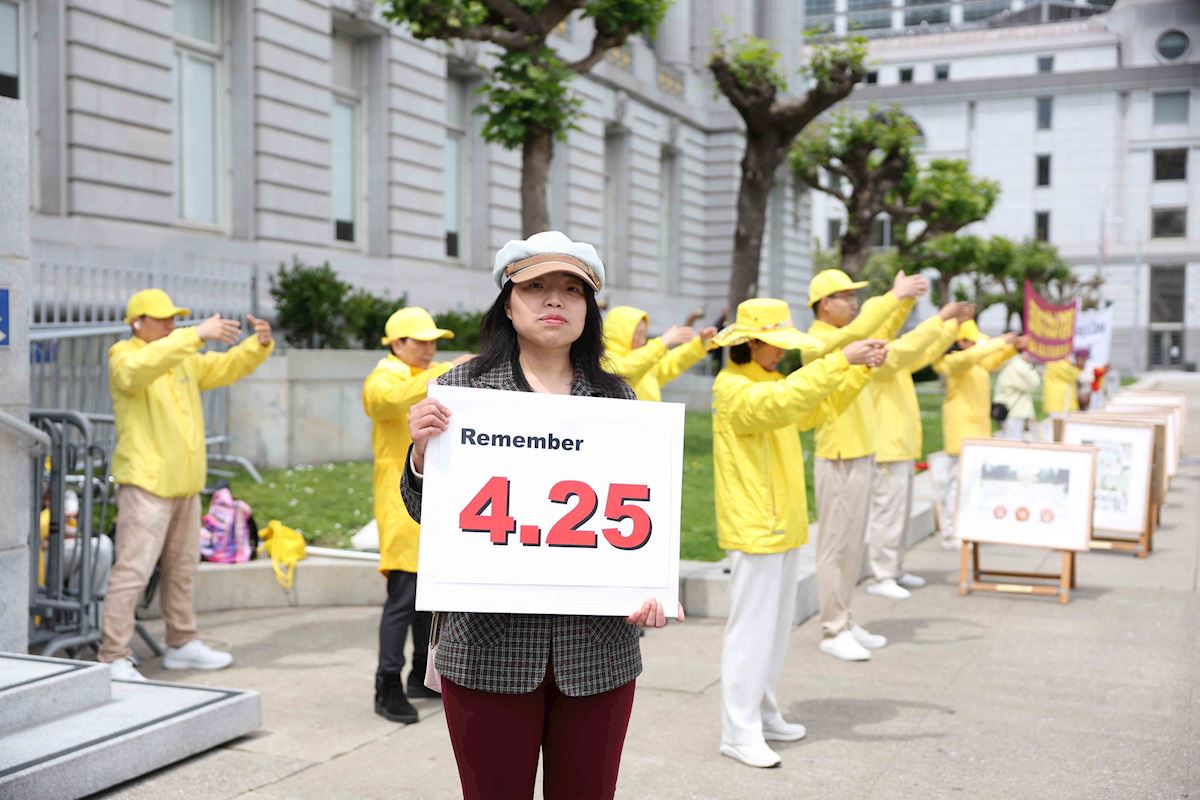 Li Ke, eine Chinesin, die in San Francisco lebt, berichtete, sie habe immer schon vorgehabt, einmal zu einer Falun-Gong-Veranstaltung zu kommen. Als sie von der Veranstaltung an diesem Tag erfuhr, erschien sie, um ihre Unterstützung zu zeigen. Mit einem Schild, auf dem „Denkt an den 25. April“ stand, verkündete sie: „Wir sollten uns den Geist des Appells vom 25. April zum Vorbild nehmen. Mein Eindruck von Falun-Gong-Praktizierenden ist, dass sie besonders ehrlich sind.“