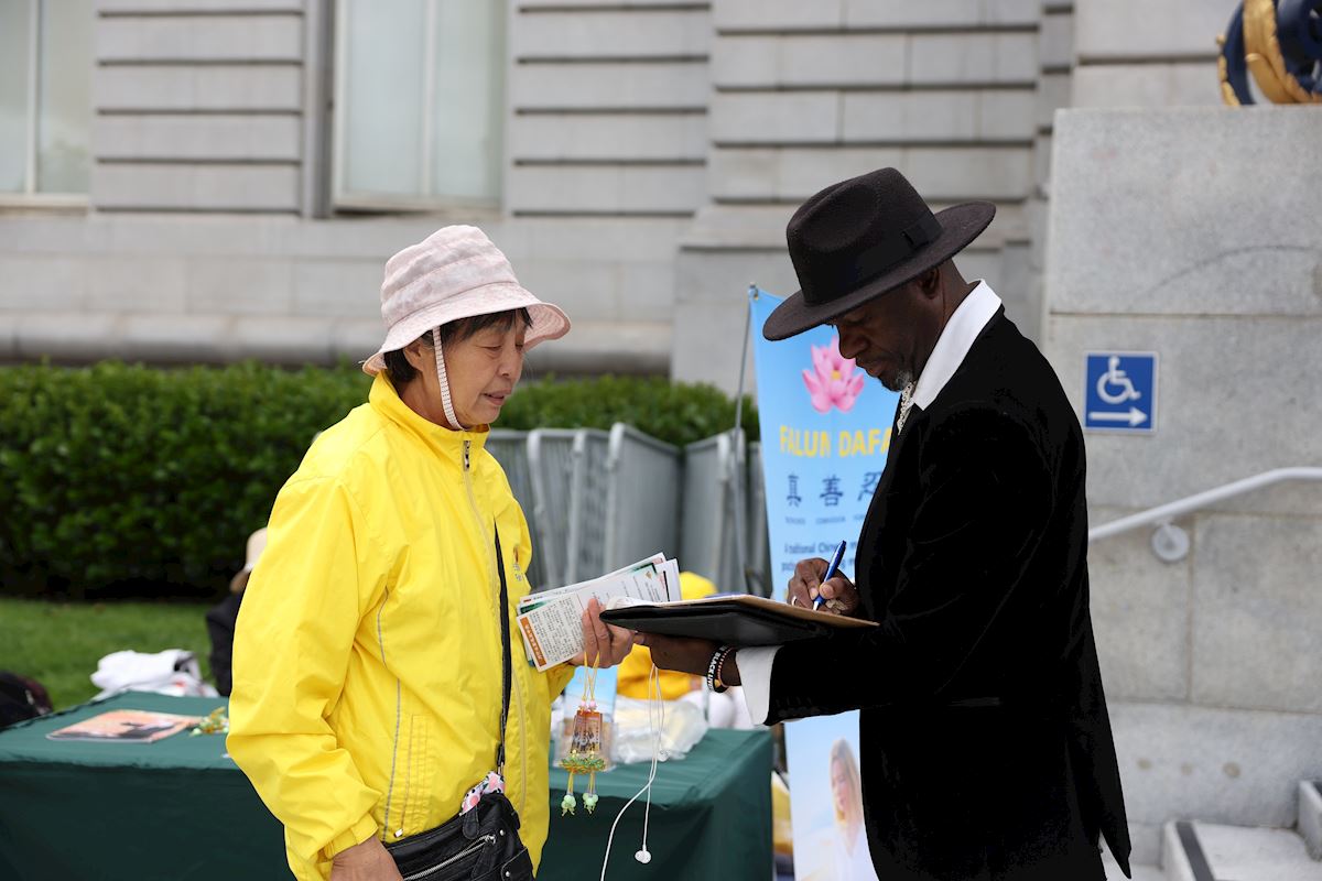 Forman erklärte seine Beweggründe: „Ich muss das tun, weil es richtig ist. Ich unterstütze damit die Menschenrechte und euch. Die Menschenrechte gelten universell. Ich habe zum ersten Mal von der Verfolgung von Falun Gong in China gehört. Ihr macht die Menschen auf die Fakten aufmerksam.“