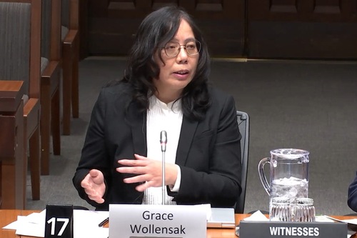 Grace Wollensak, nationale Koordinatorin des Falun Dafa Vereins in Kanada, sagt am 20. April 2026 vor dem Unterausschuss für internationale Menschenrechte des kanadischen Unterhauses in Ottawa aus (Screenshot aus einem Parlamentsvideo)
