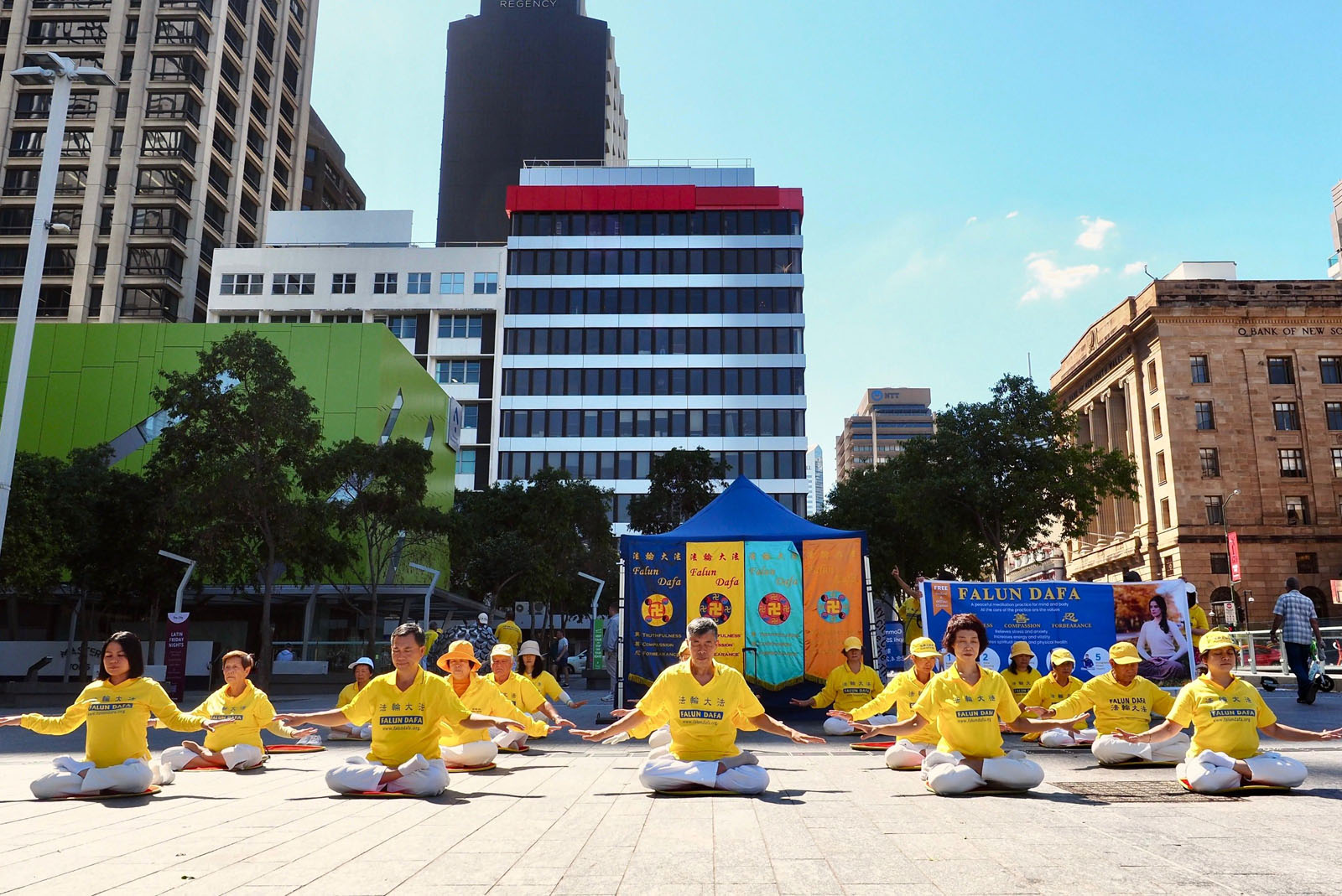 Falun-Dafa-Praktizierende erinnern auf dem Brisbane Square mit ihren Aktivitäten an den Appell vom 25. April