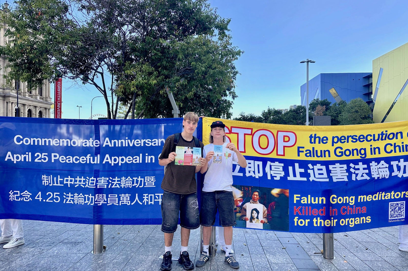 Die Gymnasiasten Aiden Frost und Ryley Evanns aus Logan erfuhren von der Verfolgung in China und unterzeichneten eine Petition, um zu deren Beendigung beizutragen. Für sie sei es – gerade weil sie in einer freien Gesellschaft wie Australien leben – nur schwer vorstellbar, dass eine derartige Unterdrückung tatsächlich existiert. Unter dem totalitären Regime der KPCh sei dies jedoch Realität, was sie als tragisch bezeichneten.