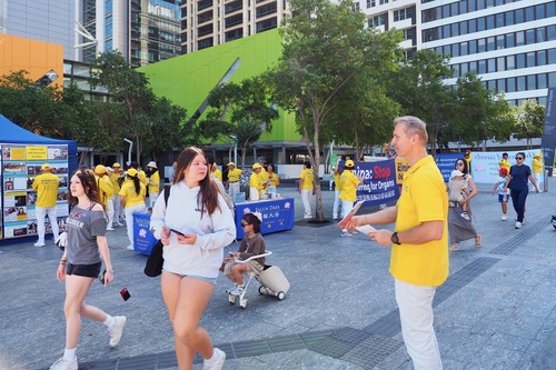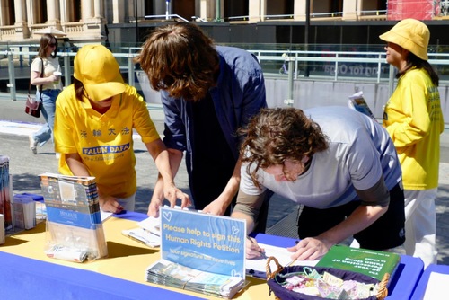 Für Sydney war dies das erste Mal, dass er von der staatlich geförderten, erzwungenen Organentnahme an lebenden Falun-Dafa-Praktizierenden durch die KPCh hörte. Er war schockiert und meinte, es sei wichtig, über diese Dinge Bescheid zu wissen – auch wenn dies angesichts der negativen Propaganda der Medien schwierig sei. Er dankte den Praktizierenden für die Durchführung dieser Aktivitäten.