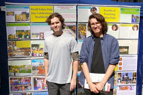 Aiden King und Sydney Kirk sind Studenten der JMC Academy. Sie sprachen mit Praktizierenden und erfuhren dabei, dass die Prinzipien von Falun Dafa „Wahrhaftigkeit, Güte und Nachsicht“ lauten und dass die KPCh Praktizierende in China verfolgt und ihnen Organe raubt. Aiden äußerte, dies sei schrecklich. Er hatte bereits zuvor von der Verfolgung gehört, kannte jedoch noch keine Einzelheiten. Er wollte mehr über das Thema der erzwungenen Organentnahme in China erfahren.