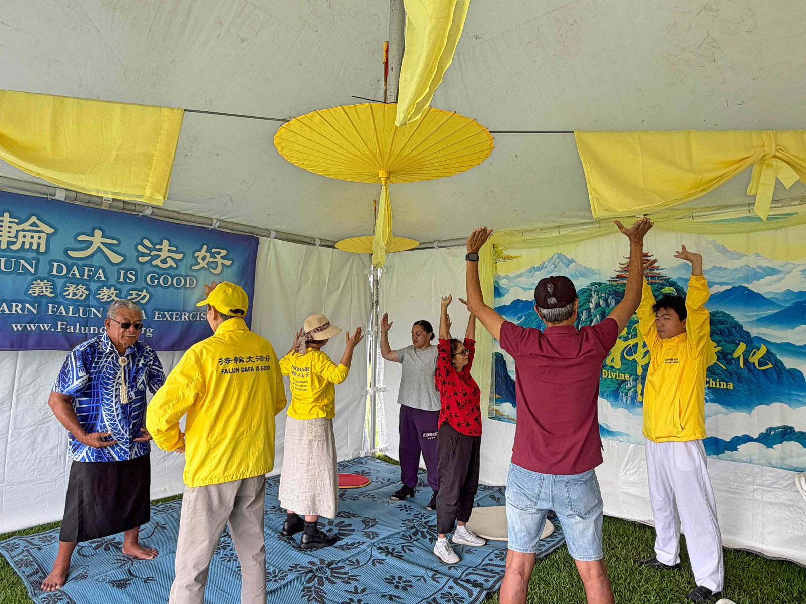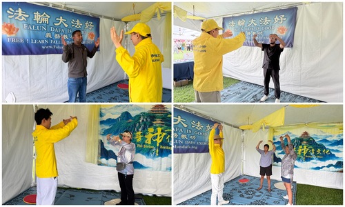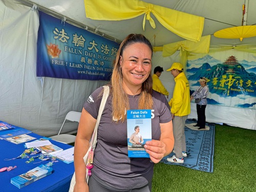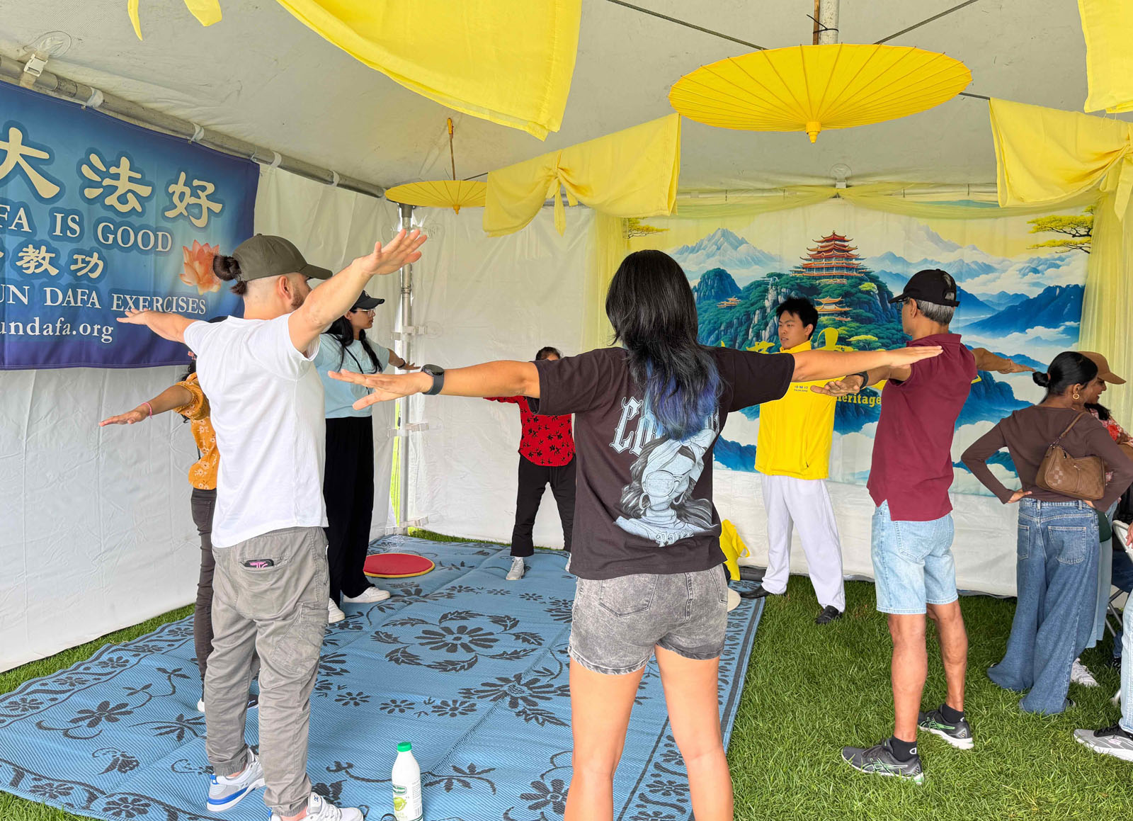 Rebecca gehörte zu den vielen Interessenten, die die Falun-Dafa-Übungen ausprobierten. „Ich habe die Übungen zum ersten Mal gemacht. Vorher habe ich sie noch nie ausprobiert, obwohl ich schon Leute draußen beim Üben gesehen habe.