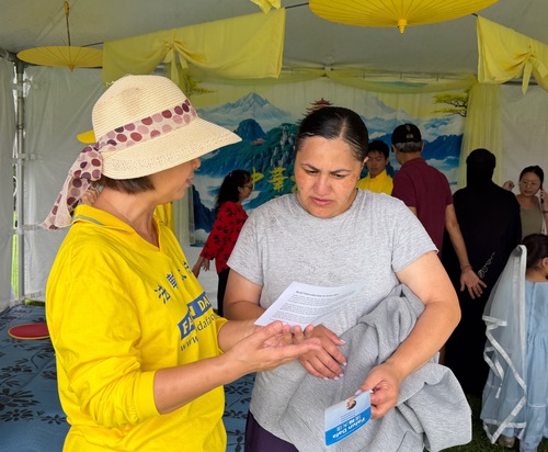 Mit Blick auf die Falun-Dafa-Prinzipien Wahrhaftigkeit, Güte und Nachsicht erklärte Ness: „Sie sind wohltuend für mich und wichtig für meine Kinder. Ihnen diese Werte zu vermitteln – das wäre unglaublich wertvoll.“ Sie erzählte, dass sie acht Kinder habe und ihr Leben ausgefüllt sei und sie sich oft unter Druck fühle.