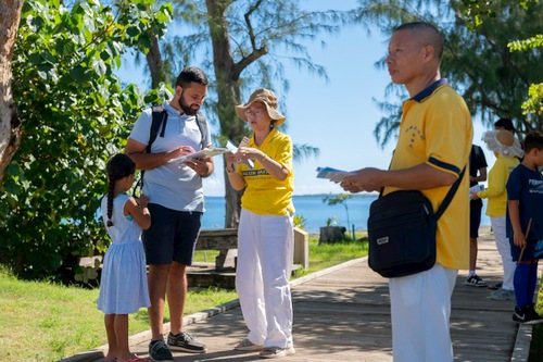 (Minghui.org) Falun-Dafa-Praktizierende organisierten für den 28. März 2026 am Pier von Saint-Paul auf der Insel Réunion eine Informationsveranstaltung. Dort stellten sie Einheimischen und Touristen die Kultivierungspraxis Falun Dafa vor und prangerten die seit 27 Jahren andauernde brutale Verfolgung durch die Kommunistische Partei Chinas (KPCh) an.